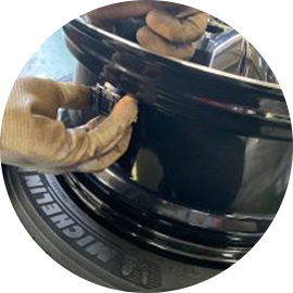 年間100,000本以上の交換実績で経験豊富なスタッフがホイールにもタイヤにも負担をかけず、丁寧に組替え。空気圧センサーが装着されているお車でも問題なく作業可能! もちろんランフラットタイヤでも一切傷などつけずに作業を行います。作業スタッフによる傷の確認も同時に行います。