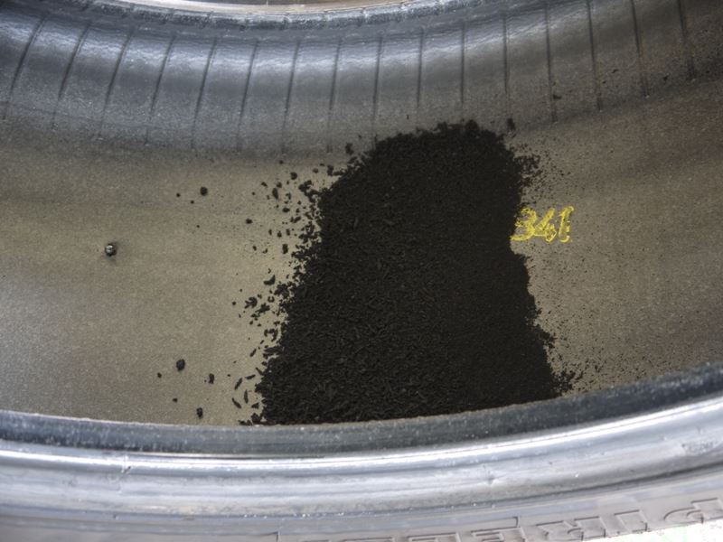 穴の開いた内面側はパッチでふさがり、トレッド面は補修材&セメントでふさがります。