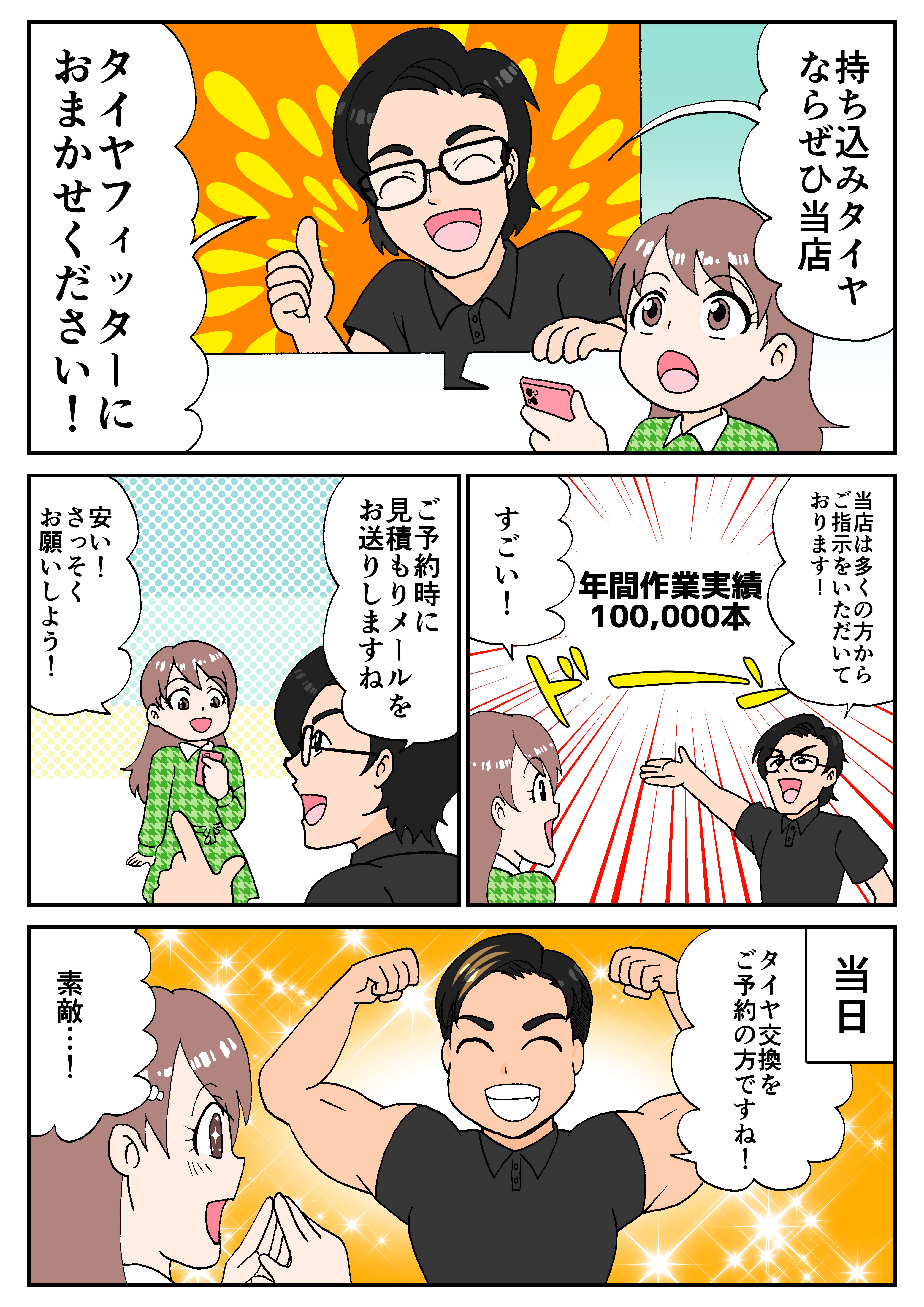 弊社ホームページより作業予約をいただく際、コメント欄に直送されるタイヤ銘柄・到着予定日等の記入をお願いします。